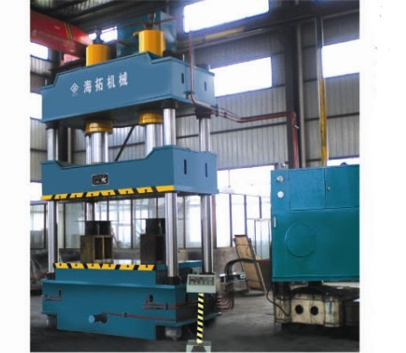 三梁四柱式結構,經計算機優化設計,簡單、經濟、適用。液壓控制系統采用插裝閥集成系統,動作可靠,使用壽命長,液壓沖擊小,減小了連結管路與泄漏點。獨立的電氣控制系統,工作可靠,動作直觀,維修方便。采用按鈕集中控制,設調整(點動),單次(半自動)二種操作方式??蓪崿F定程,定壓二種成型工藝,并具有保壓延時等性能。工作壓力、行程根據工藝需要在規定的范圍內可調。